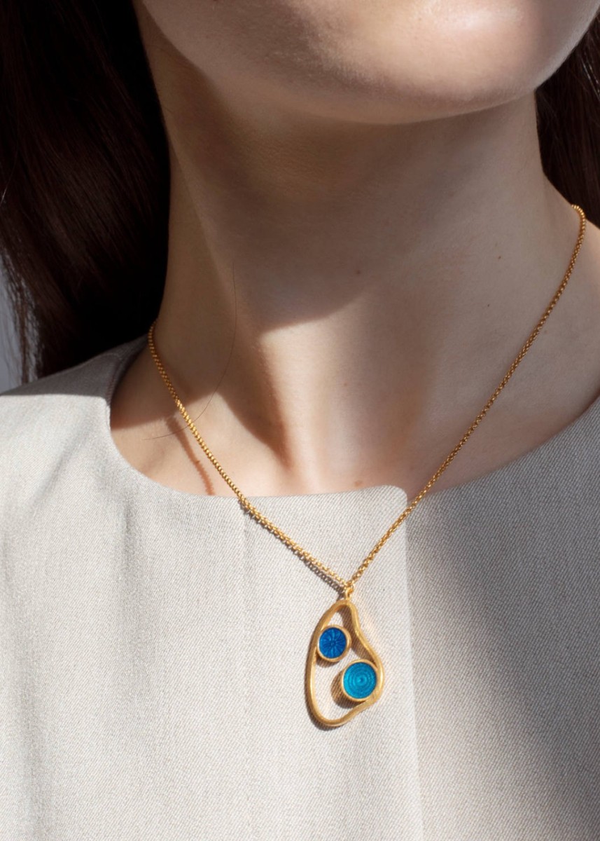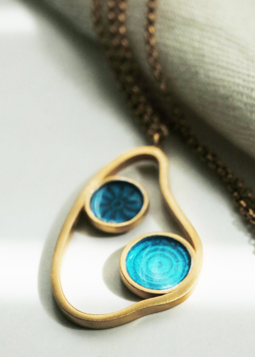 verguld met blauwe email