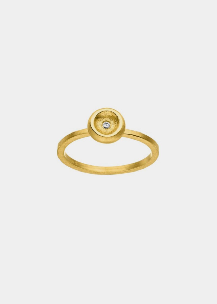 De goudcollectie wordt uitgewerkt in 14kt geel goud, de steentjes zijn diamantjes.